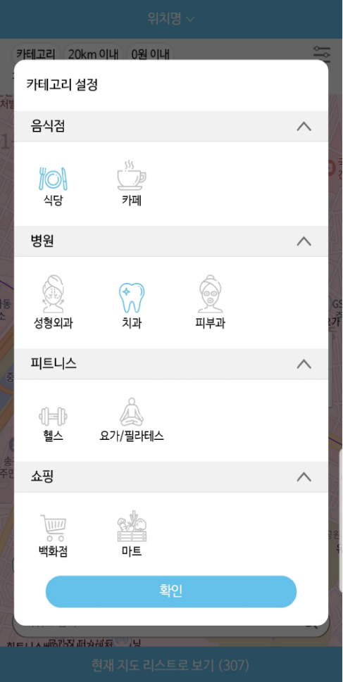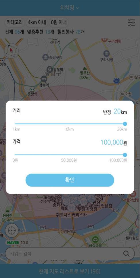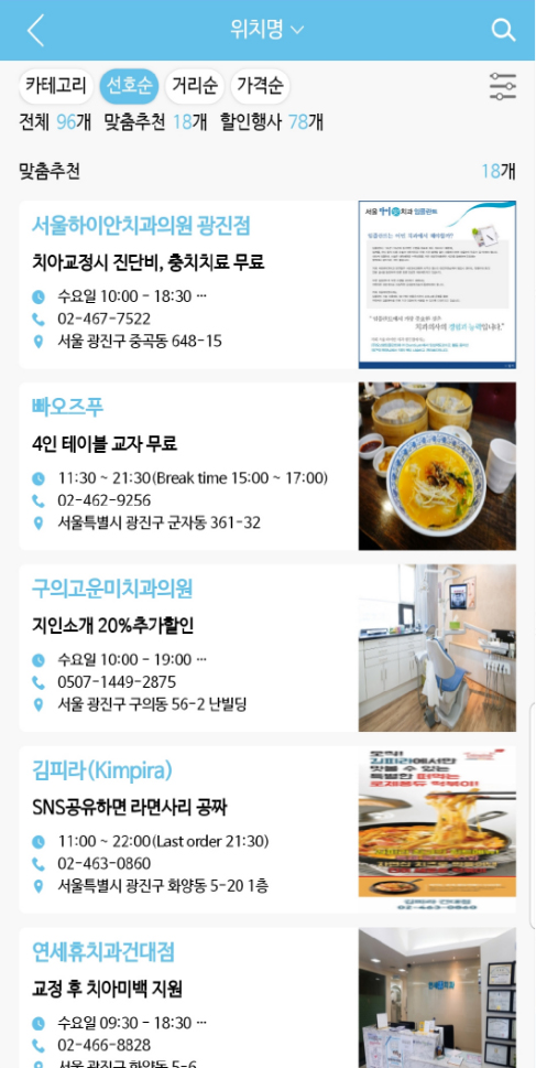 주변의 광고와 이벤트 정보를 지도와 리스트 형태로 제공하는 지역 정보 앱으로,