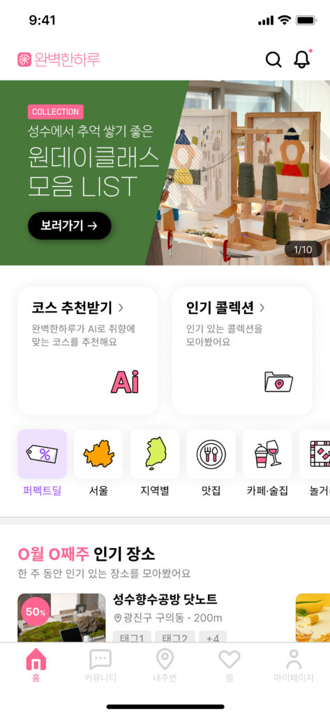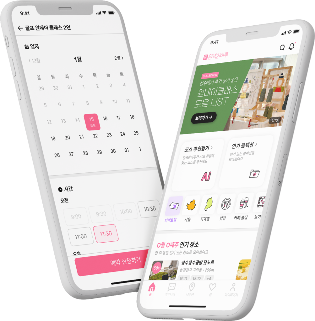 완벽한하루는 자사에서 개발한 앱 서비스로,